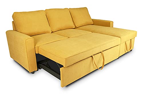 SAMIRA Divano letto angolare con contenitore, divano con chaise longue giallo mod. Kennedy