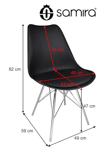 SAMIRA Sedia in polipropilene nero e piede in metallo cromato mod. Alex (Nero, 2 pz)