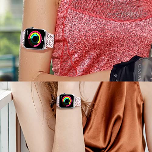 SAMLAK 3 Pezzi Compatibile Cinturino Apple Watch 41mm 40mm 38mm 45mm 44mm 42mm Uomo Donna,Regolabile in Nylon Elastico Intrecciato Cinturino di Ricambio Per iWatch Series 7/6/5/4/3/2/1/SE