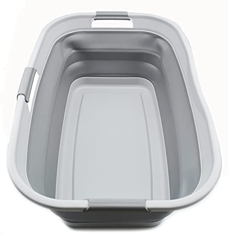 SAMMART Cesto portabiancheria pieghevole in plastica da 44 l, contenitore pieghevole pop-up, contenitore per il lavaggio portatile, cestino salvaspazio (1, grigio), dimensione: 64,5 x 44 x 26cm