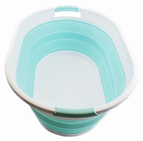 SAMMART 39 Litri Cesto portabiancheria pieghevole in plastica - Vasca da bagno/cestino ovale - Cesto portabiancheria salvaspazio (bianco/verde lago), dimensione: 61 x 45,5 x 27,3 cm