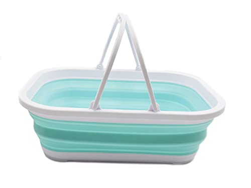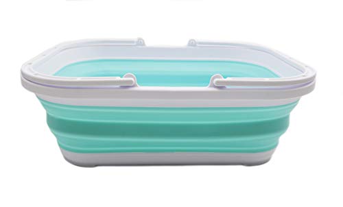 SAMMART Vasca pieghevole da 12 litri con manico, cestino portatile da picnic all'aperto, borsa per la spesa pieghevole, salvaspazio (1, bianco/blu brillante)