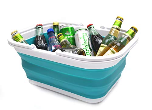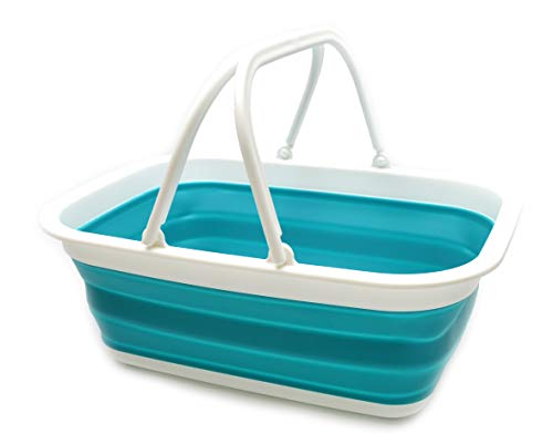 SAMMART - Vasca pieghevole da 15,5 l, con manico, per picnic e cratere portatile, per esterni, pieghevole, salvaspazio, colore: Blu brillante