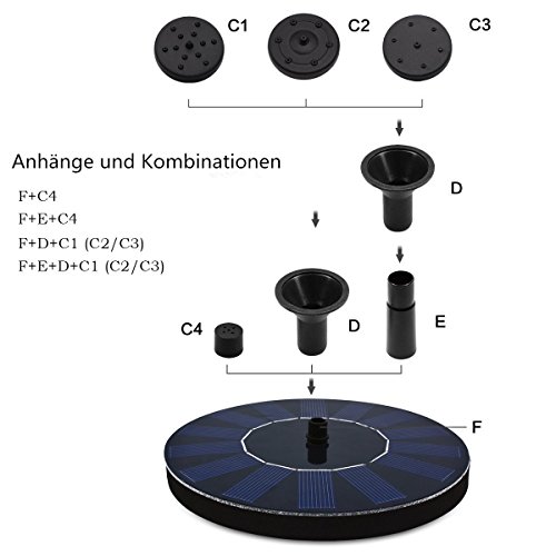 [ Kit Pompa Solare Fountain ] - 6 Accessori inclusi. Teste di spruzzo differenti per i reticoli differenti della fontana.