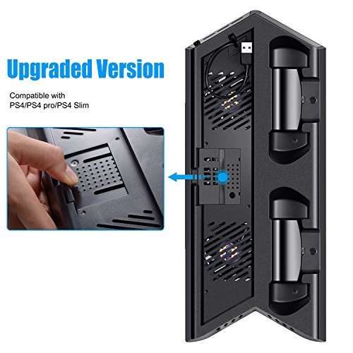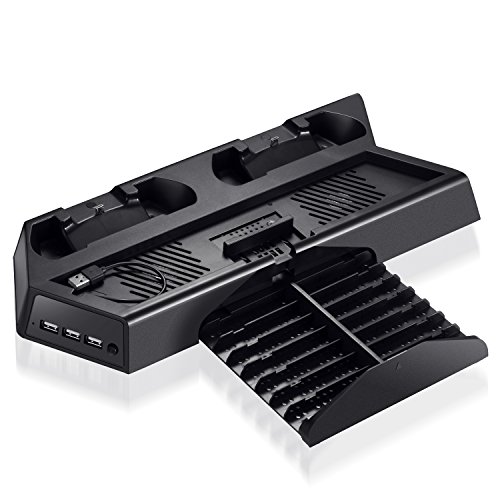 Samoleus PS4 / PS4 Slim / PS4 PRO Supporto Verticale con Ventola di Raffreddamento, Doppia Stazione di Ricarica, Cooling Fan con 14 Slot Game Storage e 3 Porte USB per Playstation 4/4 Slim / 4 PRO
