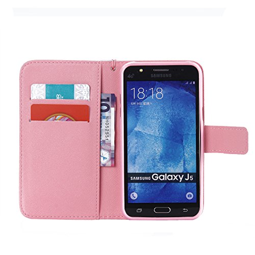 Samsung J5 (2015) Custodia, SpiritSun Pelle Protettiva Flip Cover per Samsung Galaxy J5 (2015) Moda PU Magnetico Portafoglio Copertura Book style Internamente Silicone TPU Caso per Samsung Galaxy J5 (2015) - Piuma e Uccelli