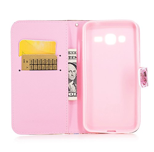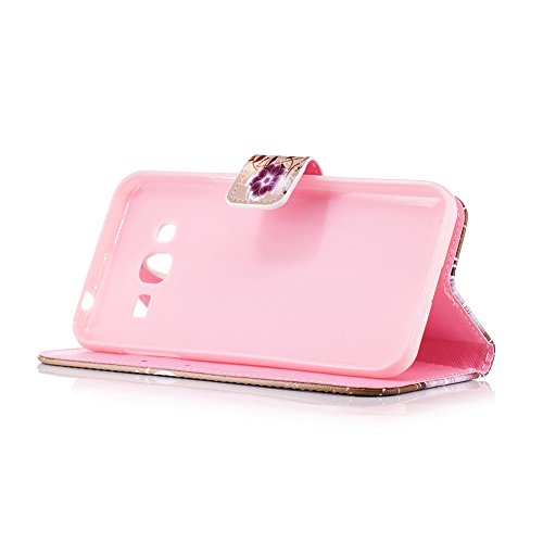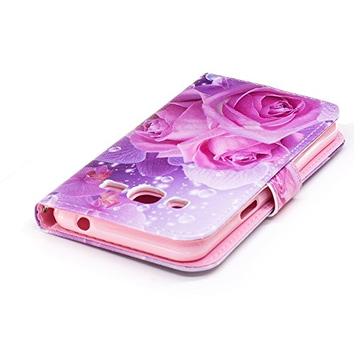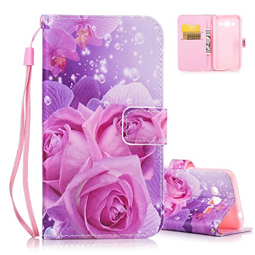 Per Samsung J3 2016 Custodia Viola, Aeeque Fiore di Rose Progettazione del Libro Foglio Costruito In Stand Protettivo Flip Cover in Pelle PU con Titolare Della Carta Slot per Samsung Galaxy J3 2016