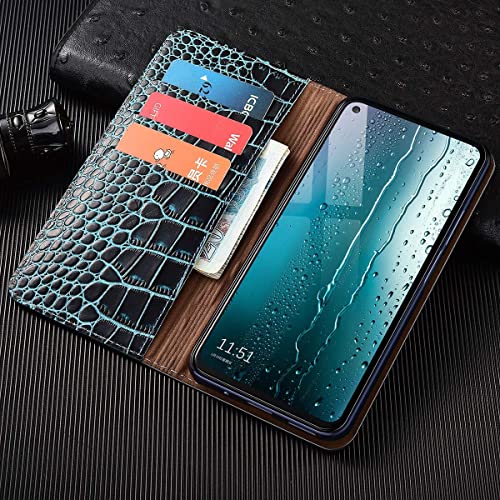 Per Samsung A13 5G Custodia In Pelle Del Telefono Caso Di Lusso Crocodile Texture Genuino Della Copertura di Vibrazione Per Samsung Galaxy A13 5G (6.5 Pollici) Con [ Portafoglio ] (Blu)