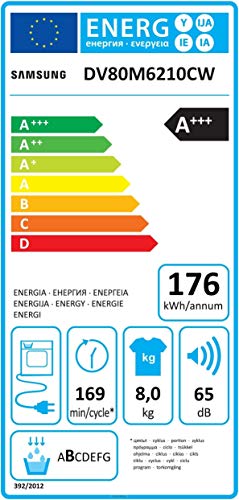 Samsung DV80M6210CW - Asciugatrice, Carica frontale 8kg, A+++, Bianco, Oblò Blu