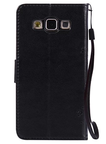 Samsung Galaxy A5 (2015)/SM-A500 F Custodia in pelle Flip Wallet Cover Case, Nnopbeclik Folio PU Leather Lusso Colorato Fiore Custodia Case Cellulare imprinting Albero del Gatto del fiore della farfalla cristallo scintillante Bookstyle Vera strass di alta qualità modello portafoglio antishock Custodia Cover con funzione stand Portacarte E CHIUSURA MAGNETICA PER SAMSUNG GALAXY A5 (2015)/SM-A500 F 5.0 pollici