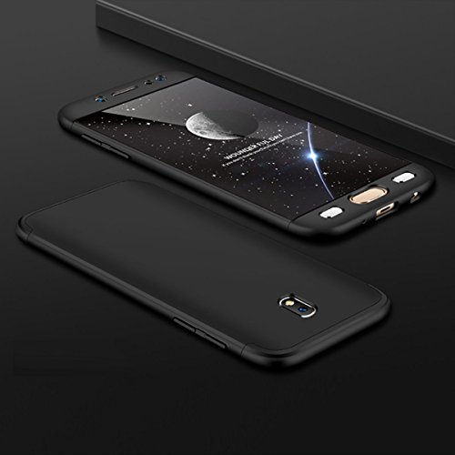 Samsung Galaxy J7 2017 Cover 360 Gradi Custodia + Pellicola Vetro Temperato Full Body Ultra Sottile Antiscivolo Protettiva Case per Samsung Galaxy J7 (2017) J730 (Nero)