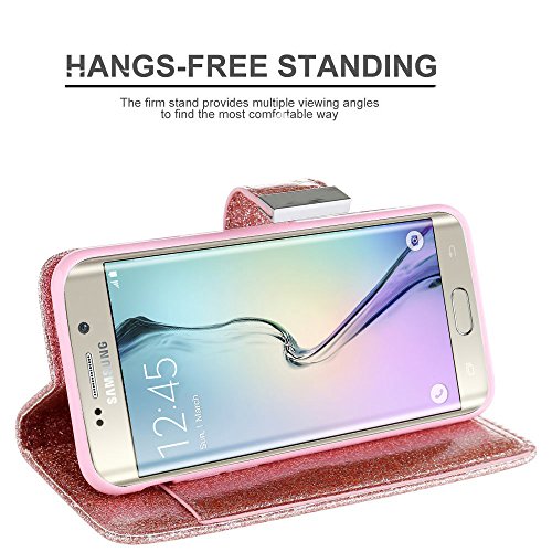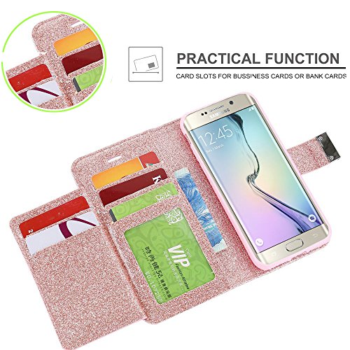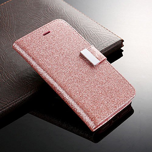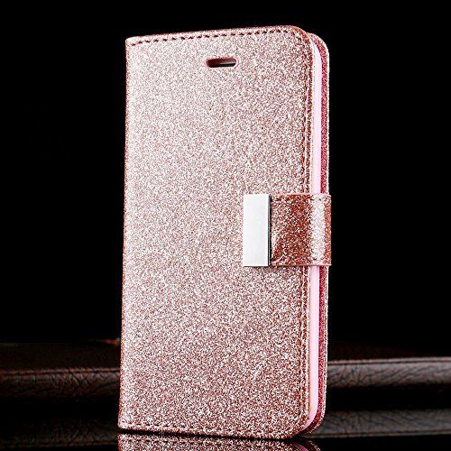 Samsung Galaxy A3 2017 Version Case, Galaxy A3 (2017) Wallet Case, LCHULLE Luxury Shiny Sparkle Glitter Bling PU Leather [Magnetic Closure][Metal Buckle] Flip Folio Kickstand Wallet Case with 6 Card Slots-Rose Gold