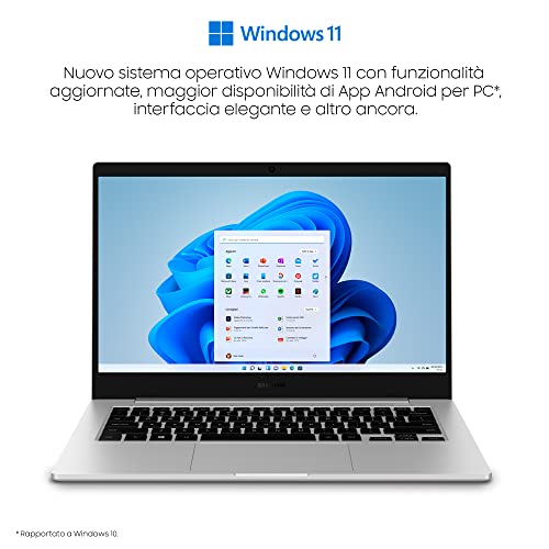 SAMSUNG Galaxy Book Go LTE Laptop, Processore Snapdragon 7c Gen 2, 14 Pollici, Windows 11 Home, 4GB RAM, SSD 128GB, Colore Mystic Silver