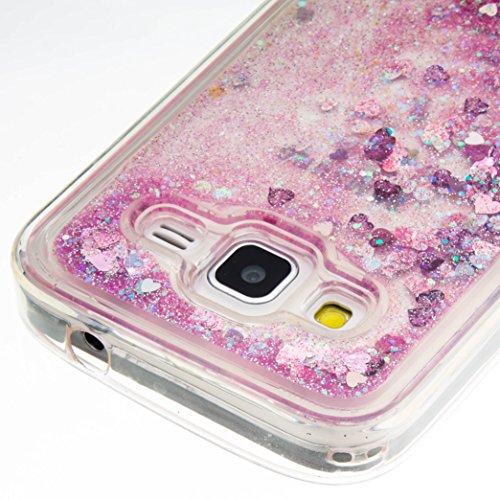 Per Samsung Galaxy Core Prime G360 Custodia Cover,SKYXD Lusso Bling Brillantini Glitter Strass Coperture Protettiva Trasparente Silicone Morbida TPU Gel Colorata Creativo 3D Disegni Flusso Liquido Sabbia Caso Case della Telefono per Samsung Galaxy G360 con Spina Della Polvere e Stilo (Rosa)