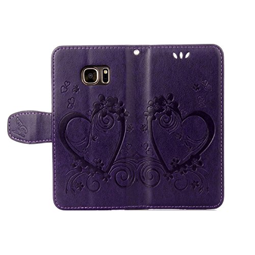 Samsung Galaxy S7 Cover, CXTcase Galaxy S7 Custodia Pelle Portafoglio Magnetico Book Style Flip Case con Cinturino da Polso Cover per Samsung Galaxy S7 Retro Fiore Farfalla Viola