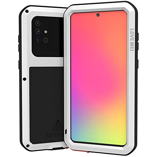 Samsung Galaxy A71 Custodia, Alluminio Metallo+Vetro Temperato Antiurto Anti-Goccia Anti-Neve Antipolvere Anti Scivolo Astuccio Cassa Robusto Resistente, Per Samsung Galaxy A71 (A71, Bianco)