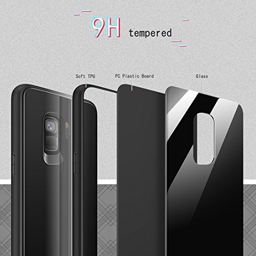 Samsung Galaxy S9 Custodia, [Crystal Series] Nero 9H vetro temperato posteriore e TPU silicone Soft lato custodia per Samsung Galaxy S9