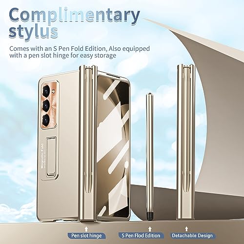 Per Samsung Galaxy Z Fold 5 2023 Custodia con S Pen & Pen Holder, [Protezione cerniera] [Protezione dello schermo integrata] [Funzione cavalletto] Cover per telefono sottile per PC All-Inclusive Oro