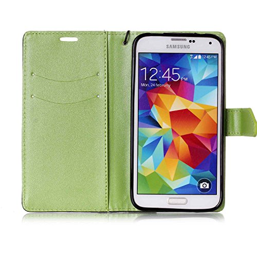 Samsung Galaxy S5 i9600 Astuccio (con Gratuito HD Proteggi Schermo) CaseHome Stitching Colore Portafoglio Progettare con slot per Schede e Cinturino da polso Foglio Flip Magnetico Chiusura Stand Caratteristica Interiore Morbido Silicone Paraurti Full Body protettivo PU Pelle Caso Copertina Pelle Conchiglia per Samsung Galaxy S5 i9600-Nero e verde