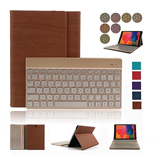 Samsung Galaxy Tab A 9.7 Keyboard case(SM-T550),Dingrich Premium Folding Design Leather Protective Case Smart Cover With Auto Sleep/Wake Up Samsung Galaxy Flip Folio Stand Case Shell Backlight Magneti (Brown)