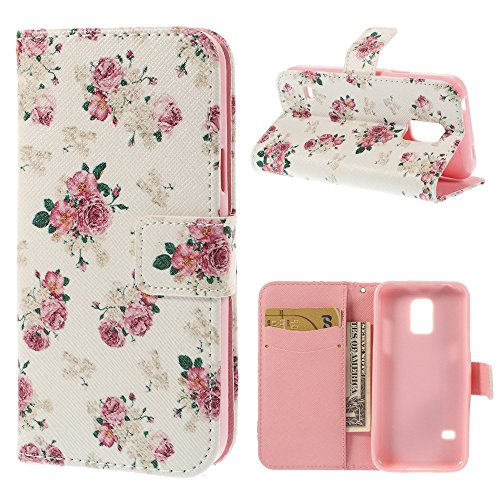 Samsung Galaxy S5 Mini Custodia a Libro di NICA, Cover Portafoglio Sottile Wallet Case Protettiva Ecopelle Vegan, Protezione per Cellulare Bumper per Telefono - Pretty Roses Edition