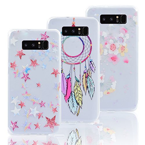 3 X Samsung Galaxy Note 8 Case Cover in Soft Silicone, vandot ultra sottile 3 in 1 composto custodia TPU Gel in silicone morbida flessible back cover anti- stracth caso antiscivolo lightweight stampato proteczione cover shell, Trasparente Clear Fiori colorati-Fiori Totem, farfalle, campanelli eolici,Stelle colorate