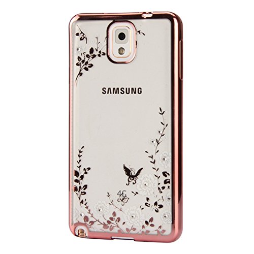 Samsung Galaxy Note 3 Cover Silicone,Samsung Note 3 Custodia TPU,URFEDA TPU Gel Silicone Neo Belle Marvel Disgnate Donna Rigida Semplice Placcatura Lussuoso Oro Rosa Gold Ultra Slim Sottile Morbida Trasparente Marvel Bling Glitter Intarsiato Diamanti Diamante Ragazza Antiuroto Bianco Fiori Protettivo Case Custodia per Samsung Galaxy Note 3"5.7"Pollici