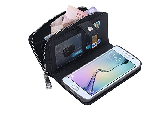 Samsung Galaxy Note 4 N9200 Custodia,Vandot 3in1 Card Slot Cerniera Cassa di Cuoio Lusso Flip Folio Custodia per Samsung Galaxy Note 4 N9200 Zipper Buco Fondina Tasca Shell Protezione Case Cover - Nero + Metallo Stylus Pen e Hard Back Ruchseite Cover