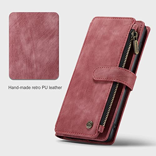 Per Samsung Galaxy S10+ Plus Custodia a portafoglio in pelle PU Flip Cover con Magnetica Pulsanti, Slot per Schede, Slot per contanti, Tasca con cerniera e Cornice per foto (Rosso)