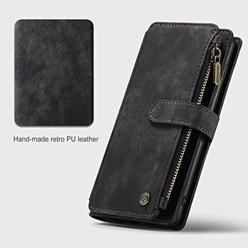 Per Samsung Galaxy S10+ Plus Custodia a portafoglio in pelle PU Flip Cover con Magnetica Pulsanti, Slot per Schede, Slot per contanti, Tasca con cerniera e Cornice per foto (Nero)