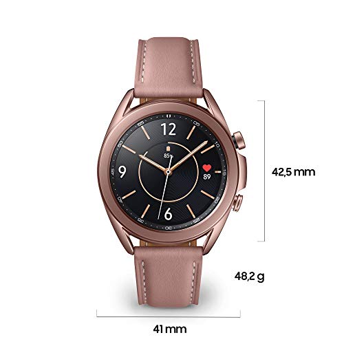 Samsung Galaxy Watch3 Smartwatch Bluetooth, cassa 41mm acciaio, cinturino pelle, Saturimetro, Rilevamento cadute, Monitoraggio sport, 48,2g, Batteria 247 mAh, IP68, Mystic Bronze [Versione Italiana]