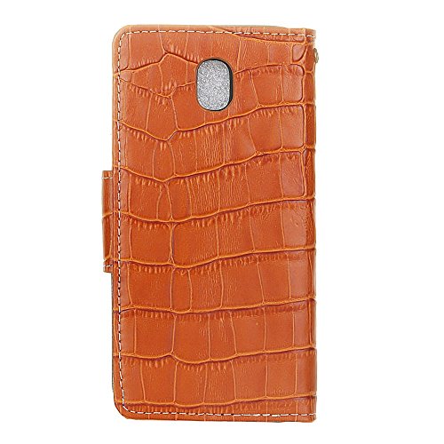 Samsung J7 Plus Funda, CHIHENG Cocodrilo Textura Retro Alta calidad Cuero TPU Inner Flip Tarjetas Crédito Slots Carcasa Cierre Magnético Billetera con Tapa Función de Soporte Funda Case Cover para Samsung Galaxy J7 Plus 5.5" Arancia