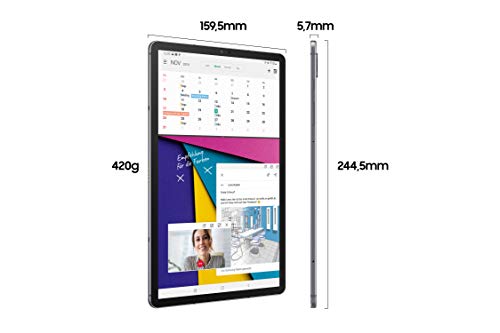 - Type: Tablet- 2G Network: only Wifi- 3G Network: only Wifi- 4G Network: only Wifi- SIM: only Wifi- Dimensions: 244.5 x 159.5 x 5.7 mm- Weight: 420 g- Displaysize: 10.5 inches- Displaytype: Super AMOLED capacitive touchscreen, 16M colors- Memory int.: 128GB 6GB RAM- Card slot: microSD, up to 1 TB (dedicated slot)- Datatransfer: only Wifi- Connectivity: Bluetooth, Wi-Fi- Features: Tuned by AKG, Dolby Atmos sound- CPU: Octa-core (1x2.84 GHz Kryo 485 & 3x2.42 GHz Kryo 485 & 4x1.78 GHz Kryo 485)- M