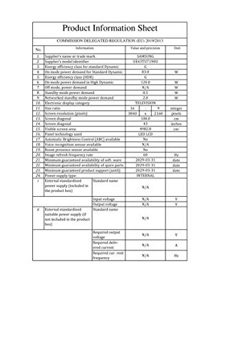 Samsung TV UE43TU7190UXZT Smart TV 43" Serie TU7190, Crystal UHD 4K, Wi-Fi, 2020, Argento, compatibile con Alexa