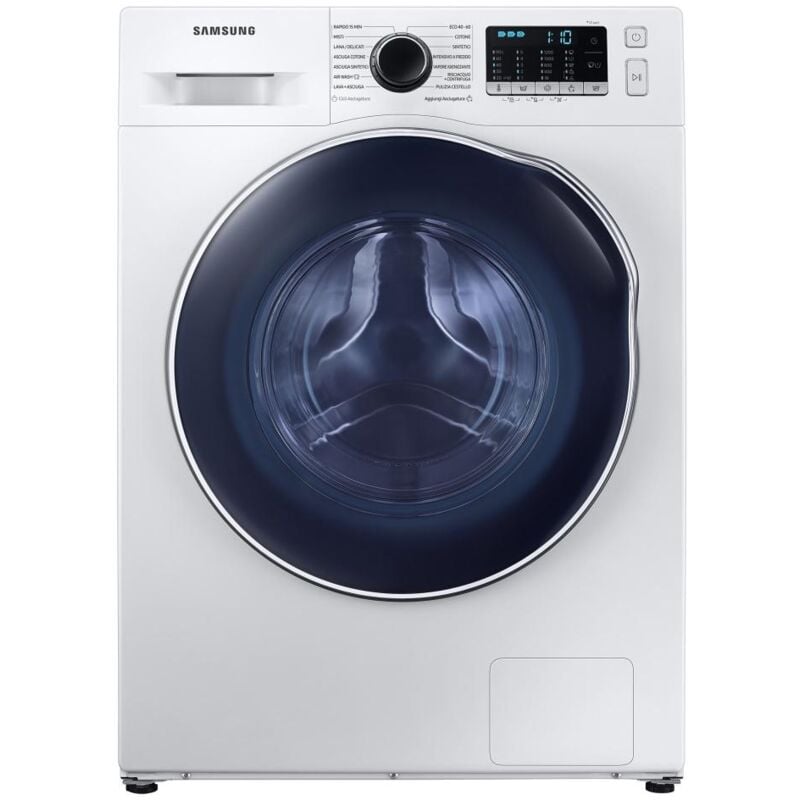Samsung WD8NK52E0AW. Tipo di carica: Caricamento frontale, Posizionamento dell'apparecchio: Libera installazione, Colore del prodotto: Bianco. Capacità di asciugatura: 5 kg, Velocità di centrifuga massima: 1200 Giri/min, Classe di efficienza della centrifuga: B. Classe di efficienza energetica (lavaggio): C, Classe di efficienza energetica( lavaggio e asciugatura): F, Consumo di acqua (lavaggio): 48 L. Profondità: 456 mm, Larghezza: 600 mm, Altezza: 850 mm Grande capacità in dimensioni compatte A dispetto del design caratterizzato dalle linee compatte, lavi fino a 8kg di bucato in soli 45 cm di profondità - ad esempio fino a 12 teli da bagno in una volta. In questo modo è possibile ridurre la frequenza dei lavaggi, risparmiando tempo, acqua e corrente.