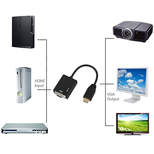 SAMTECH HDMI to VGA Adapter Cable with Audio Converter - Connect Your HDMI Device up to a VGA Port with Audio for PC Laptop Raspberry Pi, PS3, Xbox *No External Power Required* Black