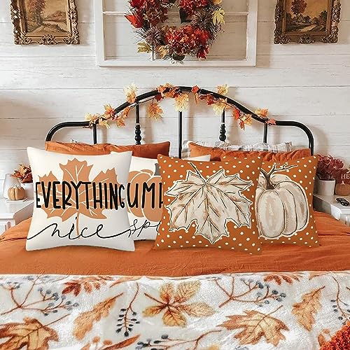 Samuliy Federa per cuscino a forma di zucca, 45,7 x 45,7 cm, motivo zucca, 4 federe per cuscini autunnali per divano letto decorazione per la casa