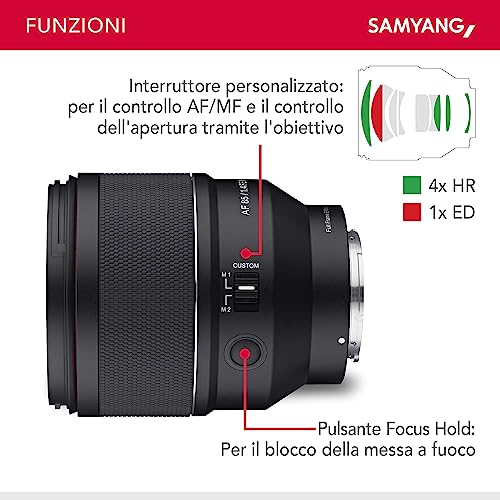 Samyang AF 85mm F1.4 II FE per Sony E - autofocus full format e obiettivo portait APS-C lunghezza focale fissa per fotocamere con sistema mirrorless Sony E Mount