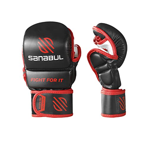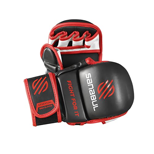 Sanabul Guanti da combattimento ibridi MMA Essential 7 oz (neri/rossi, grandi/X-Grande)