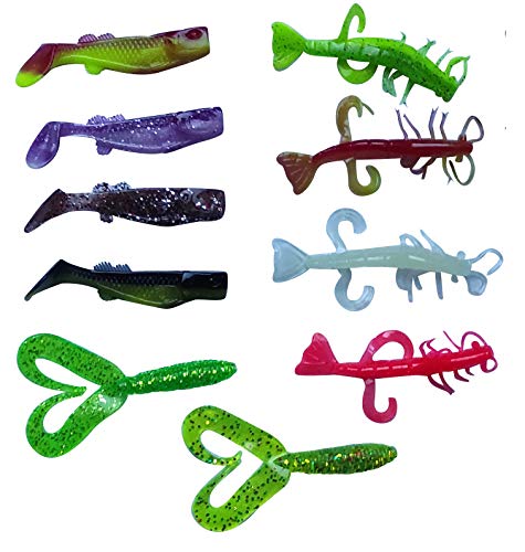 31 pesci di gomma da 8 cm - 10 cm - 11 cm e 13 cm di lunghezza per luccioperca, pesce persico e luccio di SANDAFishing e Relax Kopyto - Jankkes4", Shad 4", Shark 4" 11 cm, California e Classic 3", doppia coda Twister, Shrimp 8 cm per ogni condizione atmosferica della giusta gomma