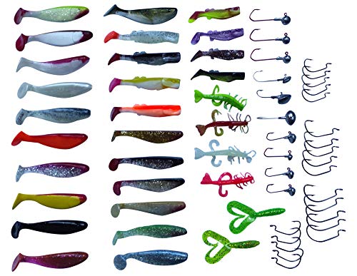SANDAFishing Set di 31 esche in gomma per luccioperca - pesce persico, pesce predatore pesce predatore - Set di esche in gomma Relax Kopyto Shark Shrimp Twister Classic Jankes per esche da pesca