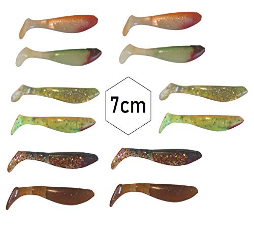 SANDAFishing Set Relax Kopyto 12 pesci in gomma - 7 cm Classic 2 pollici - Esca in gomma ideale per pesci predatori, accessori per la pesca luccioperca luccioperca, luccio, set da pesca (set 6)