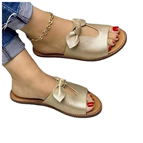 Sandali da Donna con Bocca di Pesce, Punta Aperta Sandalini da Donna con Fiocco in Spiaggia, Comodi Scarpe da Donna Estive Eleganti, Ortopedici Ciabatte con Tacco Basse(Size:EU41,Color:gold1)