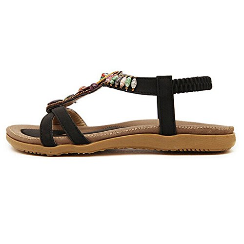 Sandali Donna Estate Bassi con Perline (EU 38, Nero)