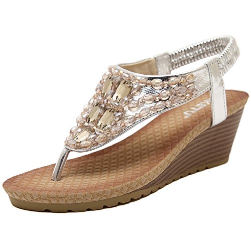 Sandali da Donna da Estate, Piatti, Modello con Infradito, Colore Dorato e Argento (EU 38, Argento)