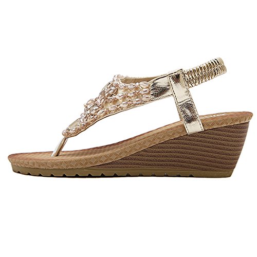 Sandali da donna da estate, piatti, modello con infradito, colore dorato e argento