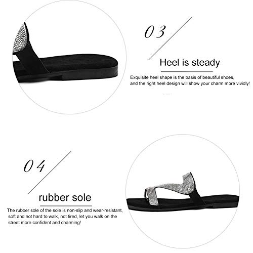 Sandali da Donna, Moda Donna con Strass Intarsiati Sandali Antiscivolo Pantofole Infradito Scarpe Basse Argento 38
