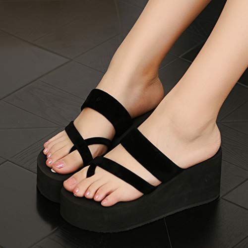 Sandali da donna con tacco, infradito con supporto per arch e plateau con zeppa, sandali da donna con plateau e plateau, con tacco, Nero, 34 EU