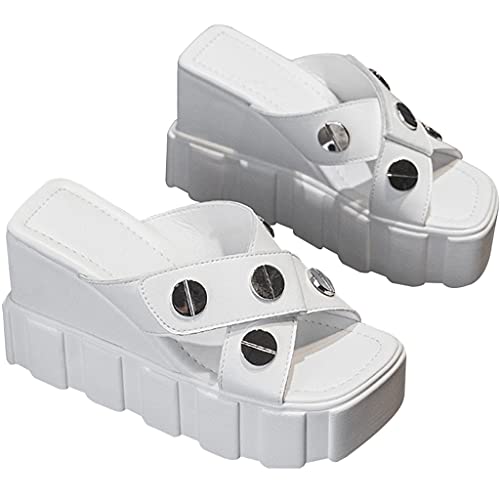 Sandali Donna Sandali con zeppa con plateau all-match, Scarpe eleganti con punta quadrata di 10 cm che aumentano l'altezza, Abbigliamento esterno casual open toe half drag ( Color: A, Size: US-7 )