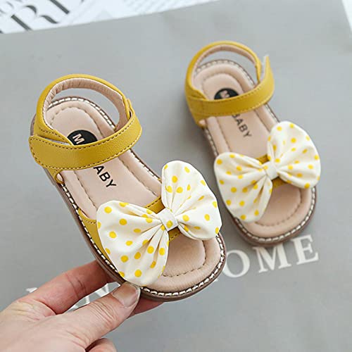 Sandali estivi per bambini, con chiusura in velcro, a pois, con fiocco, da principessa, da spiaggia, per il tempo libero, antiscivolo, giallo., 21